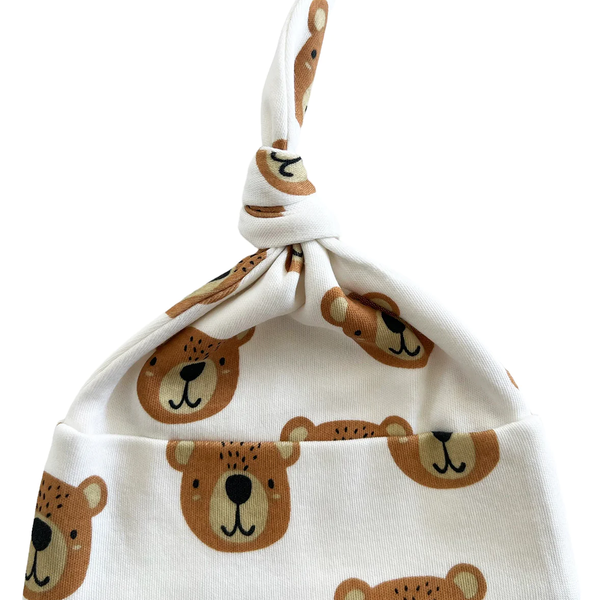Super soft and 100% organic cotton, this sweet baby beanie is ready to be paired with a matching footie or gown.