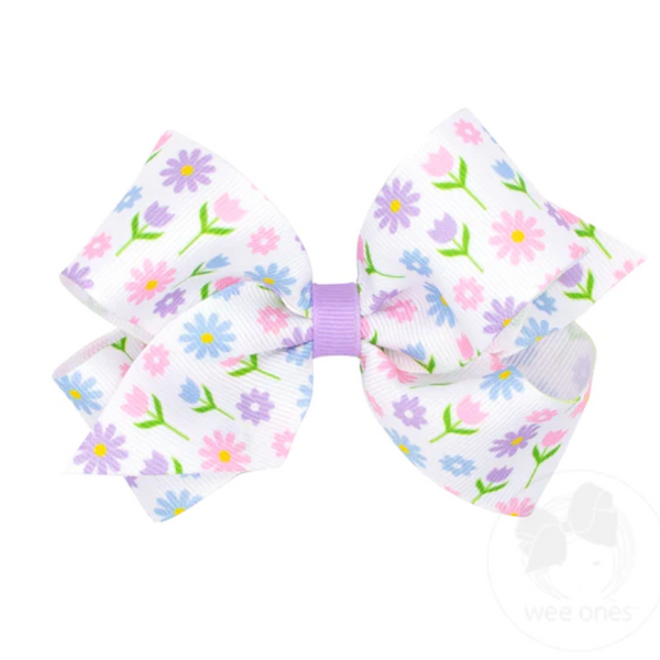 With prints so vibrant you can almost hear the screams of joy and laughter as she has fun in the sun with our grosgrain trendy printed hair bows. This bow is sure to stay in her hair all day with our patented WeeStay™ no-slip hair clip.