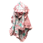 Oh So Soft & Cozy! Pretty Pink Flamingo Cuddle Blanket with bunny-soft solid pink cuddle on back side and finished w/ a coordinating Silky Satin Pink Ruffle Trim.