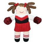 Don't be afraid to take these knit cheerleader dolls with you to the game because they are durable and easy to care for - just machine wash and lay flat to dry! 7" rattle, 12" plush doll