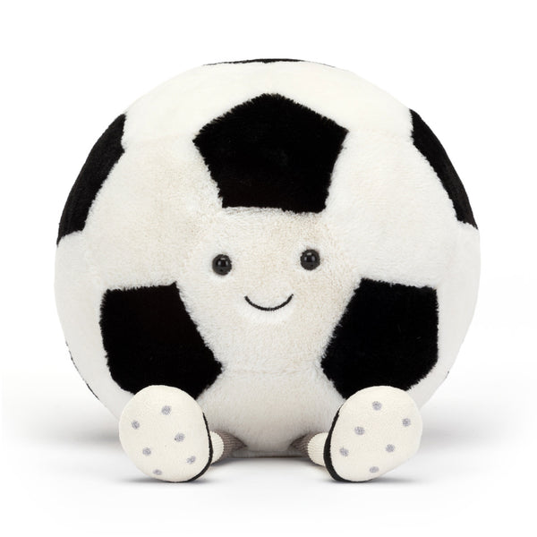 A goal scoring triumph of a gift for any football fan! Amuseable Sports Football is a stylish monochrome character created from tessellating soft fur panels, fine cord legs with knee high socks and sporting a pair of suedette boots with embroidered stud and lace detail.