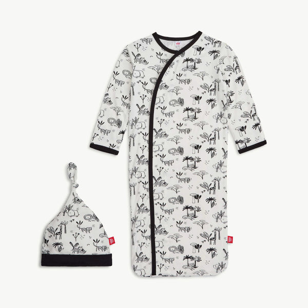 The cozy sleeper gown + hat set is a wardrobe staple for newborns who require constant diaper changes (aka all of them). With magnets down the front, baby stays in the gown during the diaper switcheroo: separate magnets, put on a freshy, click magnets, done. Other amazing features: eco-friendly TENCEL™ modal fabric and built-in mitten cuffs.