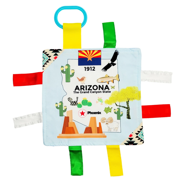 Start learning at a young age and teach your child about popular landmarks in their own state. Use this travel sensory toy as a way to engage with your little one discussing recognizable buildings, monuments and staples as they explore. Share facts about the state that they live in: state bird, animal, tree and look and find the state flag, flower and motto. The State Square is accented with coordinating ribbons that are sewn shut, so little fingers do not get intertwined in the ribbon loops. The variety of textured ribbons and fabrics encourage tactile play and help children develop cognitively, socially and emotionally through sensory interaction.