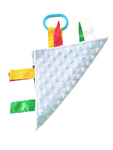 Each Learning Lovey 8x8 comes with a toy link to clip onto strollers, car seats, or baby carriers and has crinkle crackling fabric to evoke the sense of hearing. Since we care about the health of your children, we make our toy links non-toxic and BPA-free. The top fabric is a durable, micro polyester, paired with a minky plush fleece textured backing.
