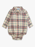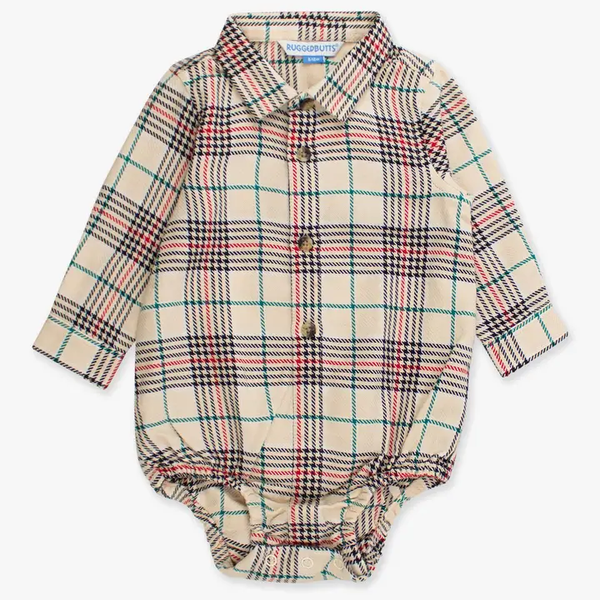 Your little man will be looking spiffy as ever in this button down bodysuit. He'll stand out on his own, but to add an extra touch, this bodysuit has the option of roll tab sleeve cuffs to keep him styled, cool and comfortable. Snaps at the legs make changing a breeze! Care Instructions: Machine wash cold; only non-chlorine bleach when needed; tumble dry low Fabric Content: 100% Cotton