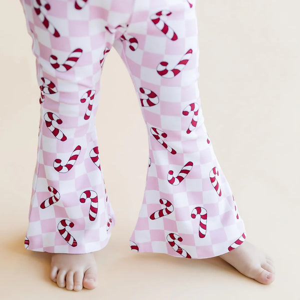 Festive leggings with checkered candy cane print and an added flare. These stylish leggings are a perfect way for your little one to make a statement this holiday season! They're so soft and cozy! Pair them with a chunky knit sweater or layer them with something new!