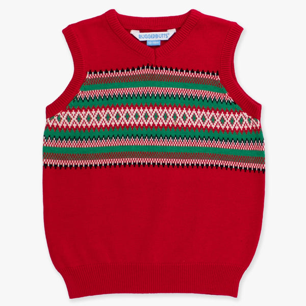 This sweet knit sweater vest is great for layering over button down shirts. Adds the perfect finishing touch to a little boy's outfit! A classic fair isle knit design is perfect for traditional holiday outfits!