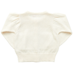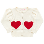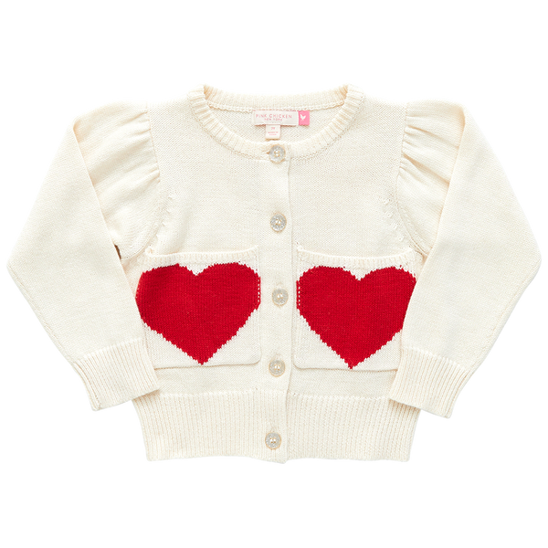 You don't always have to wear your heart on your sleeve... you can put it right out there in front with our Girls Heart Pocket Sweater. Delightful details include a soft gathered shoulder and silver glitter button closure.