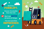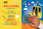 The cement truck mixes and the forklift lifts, but what does the crane do? Or the dump truck? Or the bulldozer? Find out in this rhyming, touch-and-feel book. The touch and feel silicone textures add a sensory element to this book for toddlers.
