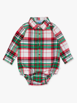 Your little man will be looking spiffy as ever in this button down bodysuit. He'll stand out on his own, but to add an extra touch, this bodysuit has the option of roll tab sleeve cuffs to keep him styled, cool and comfortable. Snaps at the legs make changing a breeze! Perfect for Christmas and staying cozy during the winter holiday season! Matching pajamas available for the whole family. Pairs well with Red, White, Green. Care Instructions: Machine wash cold; only non-chlorine bleach when needed; tumble dry low Fabric Content: 100% Cotton