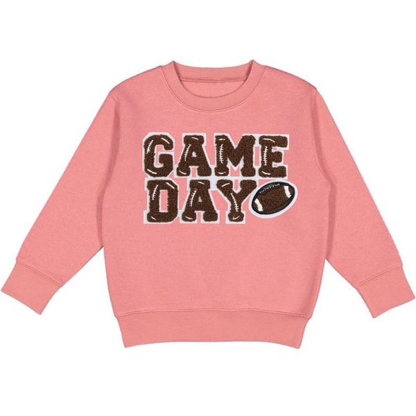 The Game Day Patch Sweatshirt is a fun and cute sweatshirt for celebrating Game Day! Features: * Crewneck Color: Dusty Rose * Patch Color: Brown and white chenille with white felt outline * Material: 60% Cotton/40% Polyester Fleece * Features: Tagless inside neck label for an itch-free wear; cozy fleece lining * Fit: Toddler Unisex; True to Size * Care: Machine washable, wash inside out, lay flat to dry, wash with like colors Each sweatshirt is hand pressed with love in our hometown warehouse
