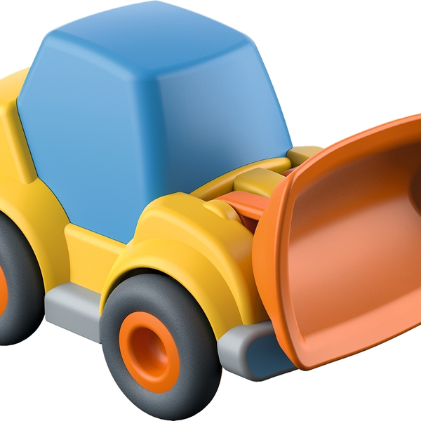This versatile wheel loader construction vehicle has a tipping arm with 2 positions and a momentum motor that allows it to travel forward on its own. Simply give the car a push and watch it speed along the tracks or any hard surface!
