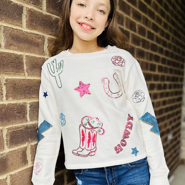 Paper Flower Howdy Sequin and Embroidery Western Icon Sweatshirt
