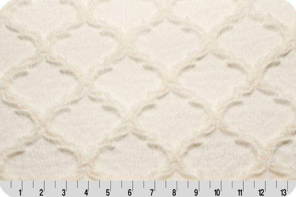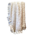 Heavenly... Luscious Ivory Embossed Lattice Cuddle Blanket Featuring Luxurious Silky Satin Ivory Ruffle.