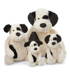 Silky-soft and lovingly loyal, Bashful Black & Cream Puppy wants to play all day! He comes in five sizes, from huge and huggable to itsy bitsy baby. His smudgy black patch and sooty tail make him even more adorable!