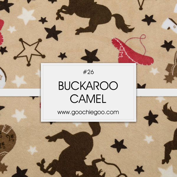 This cozy blanket features a fun western pattern for cowboys & cowgirls alike! Oh so soft camel cuddle is featured on the back side and it is trimmed w/ Goochie Goo Garbs signature silky satin in red.