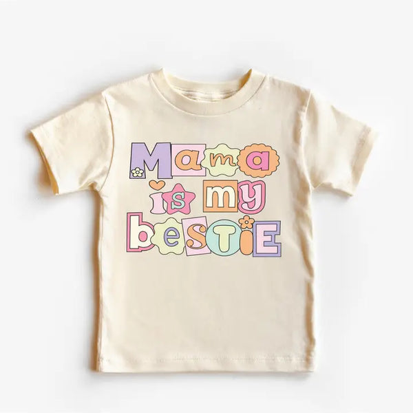 Mama is my Bestie groovy retro font desing with spring colors! Great for Mothers day or everyday wear! Made with premium ring spun cotton tees and dtf application. Runs true to size.