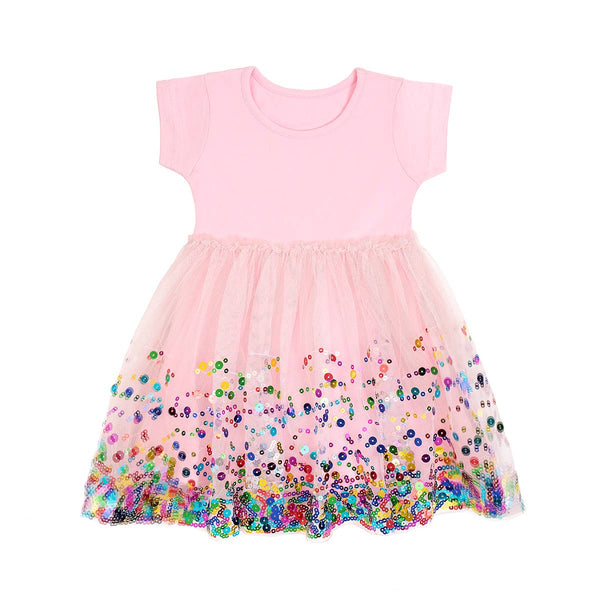 Customers love Sweet Wink tutu dresses because the tulle is super soft and doesn't scratch or itch little ones. Every dress is lined all the way to the bottom with a soft cotton fabric. The empire waist is sewn with stretchy thread so it is comfortable on little ones. The beautiful tulle overlay is embroidered with multi-color sequins which catch the light when twirling!