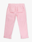 These trendy jeans feature a comfy elastic waistband and a sweet decorative heart button. The stretchy fabric offers plenty of room to move around and play, and a dainty ruffle hem and ruffle patch pockets add extra charm!
