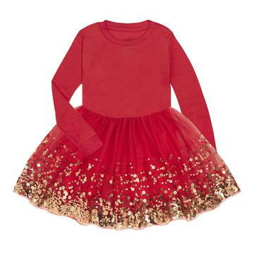 -Red Tulle skirt with gold sequin details