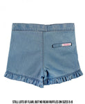 These shorts are sure to be another staple in your little girl's warm weather wardrobe. As versatile and easy as regular denim shorts, but with extra special bow details, these shorts are sure to keep her smiling!