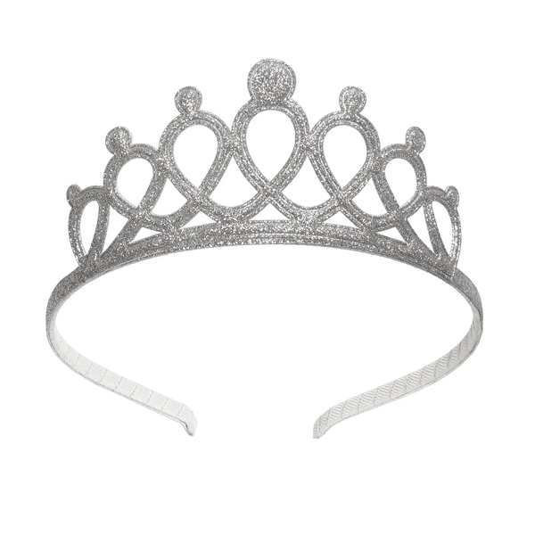 The Silver Tiara Kids Headband is the perfect kids hair accessory for celebrating a Birthday or for playing Dress Up! This Sweet Wink kids headband features a Silver glitter design that really sparkles! The inside of the headband is lined with Gold satin ribbon for comfort and the outside of the band is decorated with Silver glitter (don't worry - the glitter doesn't shed!).