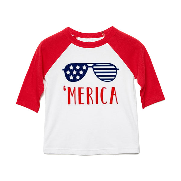 'Merica Sunglasses Design on Red Raglan T Shirt