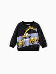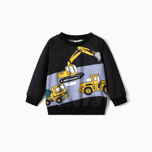 Our casual hoodies and pullovers for toddlers come in classic black and white, perfect for any day out. Crafted from a comfortable blend of polyester and spandex, they offer easy movement and durability. Available in sizes 18-24 months through 5-6 years, these tops are designed to adapt as your child grows. The playful vehicle pattern adds a touch of fun that your little one will love