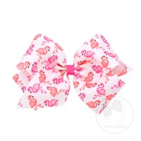 Flamingo printed king size grosgrain bow. Approximate Size: 6.25" x 5" (2.25" Ribbon)